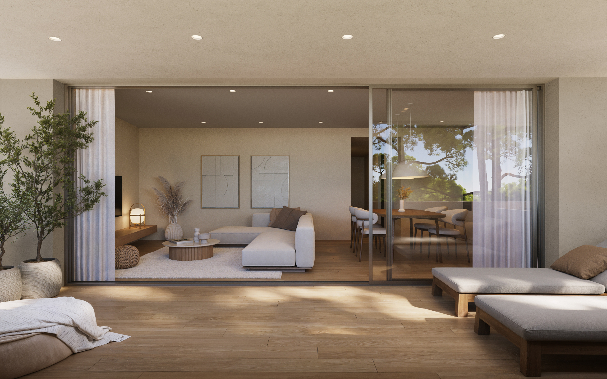 Las viviendas destacan por sus espacios amplios, luminosos y elegantes, con acabados de alta gama, grandes ventanales que inundan los interiores de luz natural y cocinas abiertas que se fusionan con el salón-comedor y las terrazas, creando una perfecta continuidad entre el interior y el exterior.